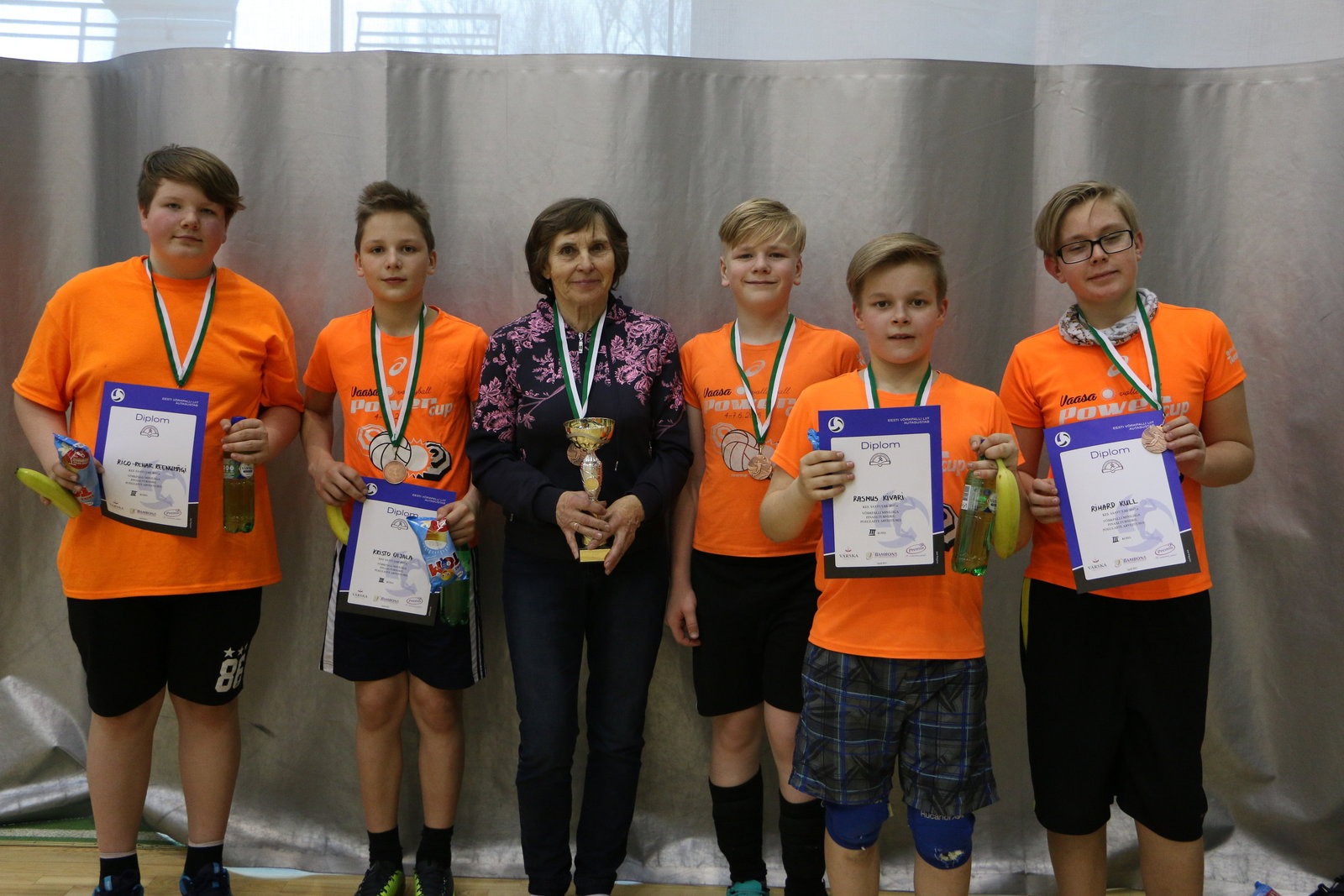 Parimatele panid medalid ja karikad välja Eesti Võrkpalli Liit ja Eesti Koolispordi Liit. Auhindadega premeerisid Premia, Bambona ja Värska. Täname sponsoreid, kes laste näod särama lõid!