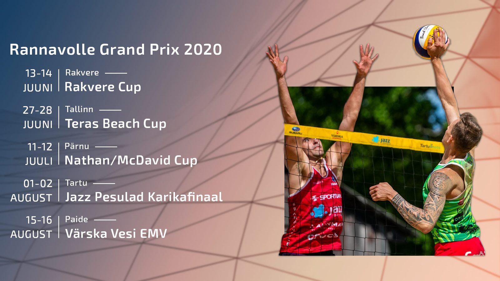 15.-16. augustil selgitatakse Paides Eesti rannavõrkpalli meistrid. Kohal on kõik meie paremad mängijad eesotsas esipaaride Kusti Nõlvaku - Mart Tiisaare ja Liisa Soometsa - Heleene Hollasega. Lisaks näeb võistlemas kunagisi U19 vanuseklassi rannavolle maailmameistreid Kristo Kollot - Oliver Vennotm kes nüüd teevad tegusid saalikoondises. Postimees näitab otsepilti pühapäeval alates meeste veerandfinaalidest.